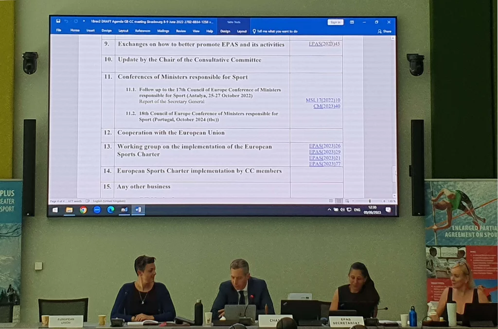 EPAS – Enlarged Partial Agreement on Sport, a body of the Council of Europe (COE), held its annual meeting of the Governing Board and Consultative Committee in Strasbourg on June 8 and 9, 2023; providing an overview of activities and bringing changes in the elected representatives of the two EPAS bodies.