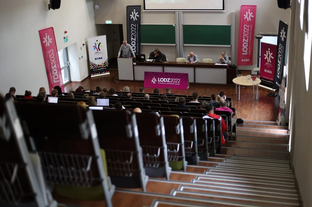 Next to greet the present NUSA representatives was Mr Adam Roczek, President of the European University Sports Association (EUSA), who addressed that besides all the challenges that the organization of these games had, he is happy to see everyone after a long time of not having EUSA events happening. He also stated that the start of the competitions is going smoothly, without any major concerns or challenges. He assured the attendees that the Organizational Committee and EUSA, both are going to make sure, that everyone will have a great stay and enjoyable time here at the European Universities Games 2022 in Lodz, Poland.