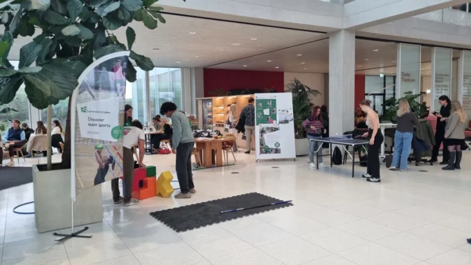 In Switzerland, sport-oriented challenges were proposed at various locations across the University of St.Gallen. About 400 students and employees participated in these challenges. When completing 2 out of 4 stands, they received a small gift. At the same time, there was a competition across all stands, and the winner of this overall competition also received a prize.