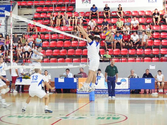 After the announcement of the universities which are participating in this years’ volleyball championship the Rector spoke first and gave an inspiring speech about the sport spirit. Afterwards followed the speech of the member of EUSA Executive Committee Mr Dinos Pavlou who introduced the technical delegates Mr Jean Loup Miguet and Mr Joerg Foerster and other members of the SCAC.  He expressed his delight with the whole organization of the Championship, reserving special praise for two members of the Organizing Committee - the president of the University Sports Association of Kragujevac Mr Nenad Tanasijević and the PR Manager of the Championship Mr Marko Petrović.