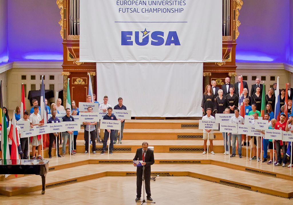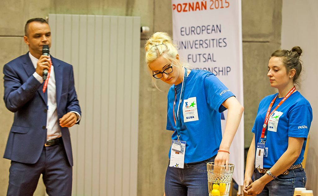On 1st August 2015 in the Aula Lubrańskiego of the Adam Mickiewicz University, the Opening Ceremony of the 10th European Universities Futsal Championship was held. About 500 athletes in 22 men’s and 7 women’s teams, representing 29 universities from 14 countries completed from August the 2 to the 9 in 3 sportcenters in Poznan, Poland. The Ceremony opened with the colourful procession of all the teams taking part in the Championship.