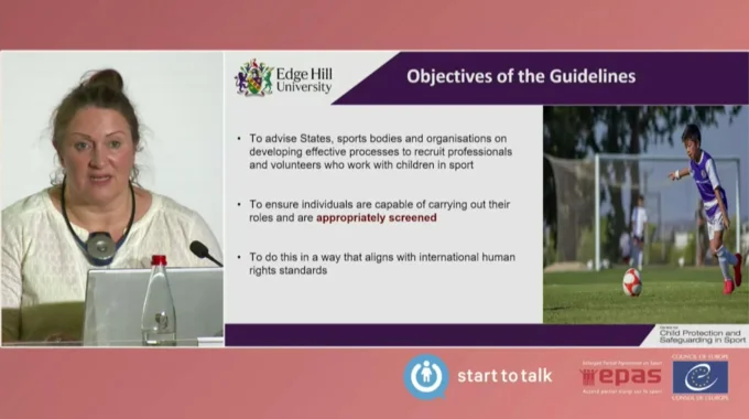 The first content session focused on Safer recruitment in sport, with introduction by Elena Casero, EPAS Programme Manager of the Council of Europe. Additional insights by Melanie Lang, Reader in child protection in sport at Edge Hill University and member of the Council of Europe’s Pool of international experts on safe sport.