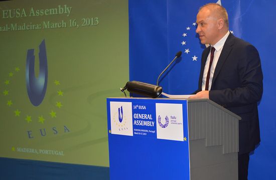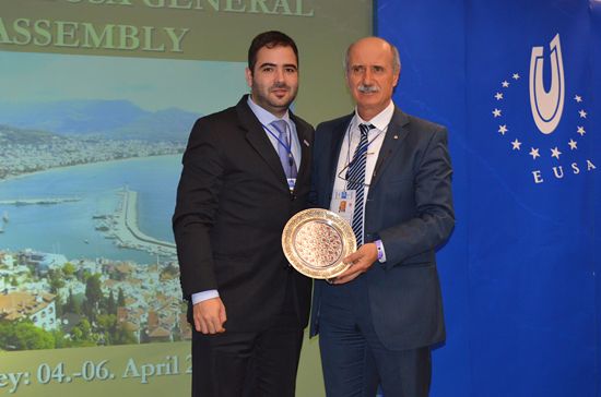 After the motions, the Executive Committee presented the Activity plan and the budget for 2013, and the proposal to honour former EC members Mr Wolf Frühauf, Mrs Alison Odell, Mr Dinos Pavlou and Mr Filipe Santos with the title of Honorary members, recognising their important work and contribution to EUSA. All were accepted by acclamation, and will officially receive their awards at the next year’s Assembly, which will be held in Antalya, Turkey between April 3 and 6, 2014.