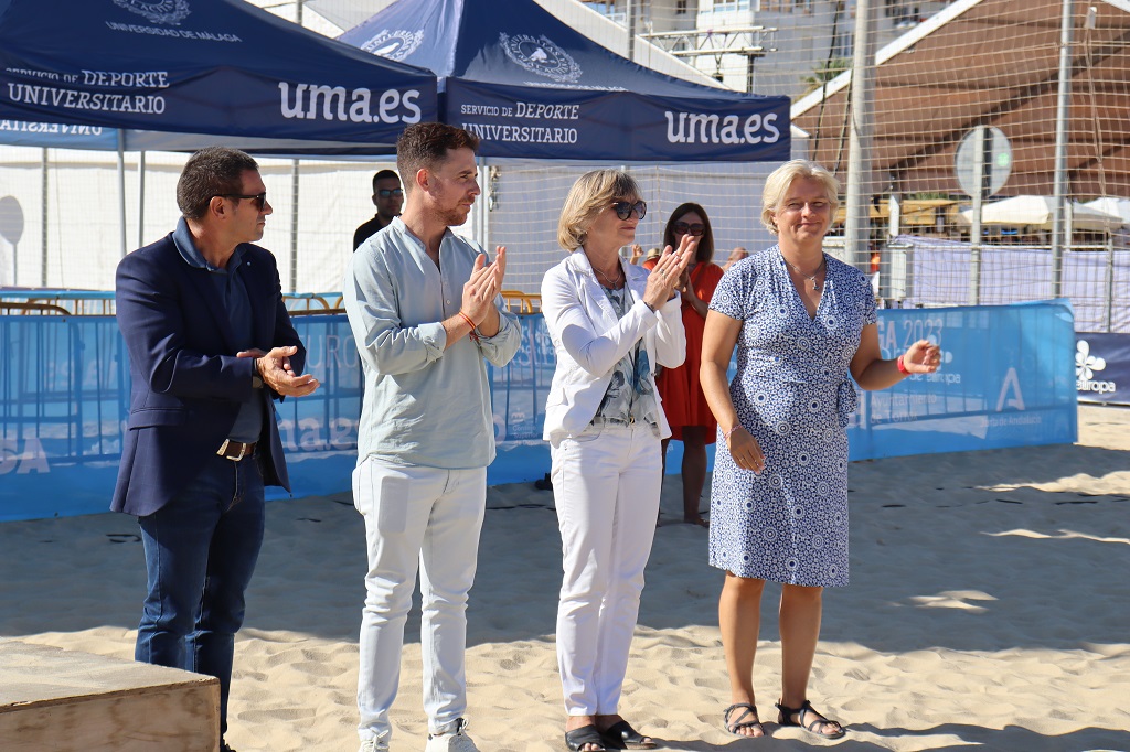 Councillor for sports, youth and historical center from Torrox, Mr Emilio Fernández Rodríguez Deputy Vice Rector for Sports of University of Malaga and Ms Ivana Ertlova EUSA SCAC Chair for Beach Handball and Mr Bruno Baracossa, EUSA SCAC Chair for Beach Volleyball.