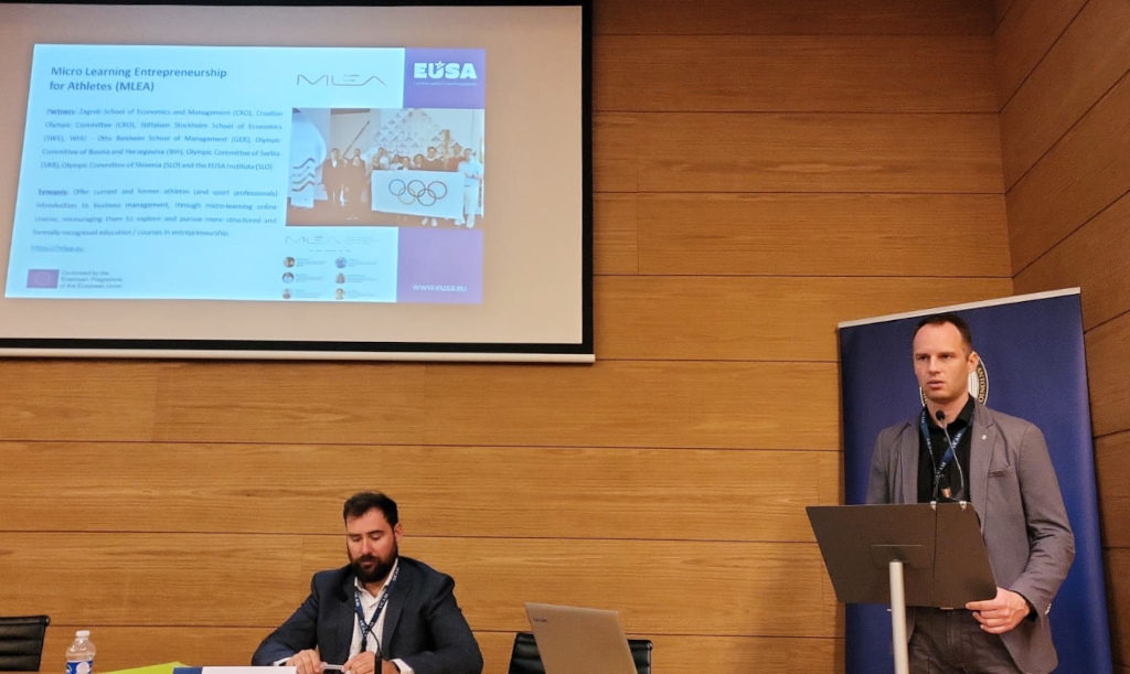Special attention was also given on projects, co-funded by the European Union through the Erasmus+ Programme of the European Union. The key good practice example projects were introduced – the Brand Value Alignment through Dual Career (BRAVA), Micro Learning Entrepreneurship for Athletes (MLEA), Athletes friendly education (AFE), Education Model for Parents of Athletes in Academics (EMPATIA), and Promoting Dual Career through Education of young Journalists (PRODUCE). The EAS event was also an opportunity for representatives of some of the projects to meet; namely the MLEA and BRAVA projects met for informal exchange and updates.