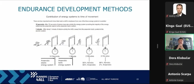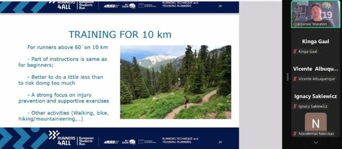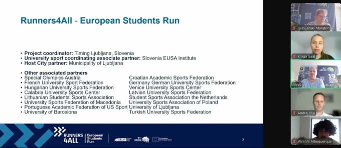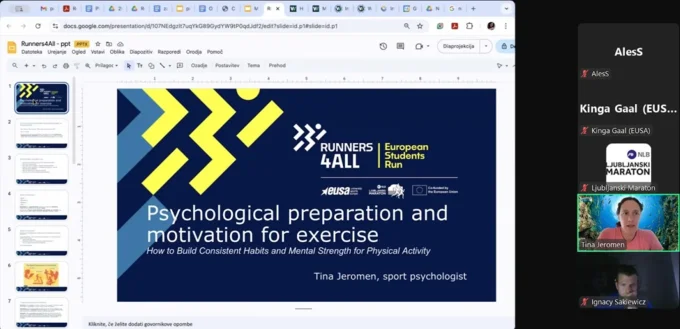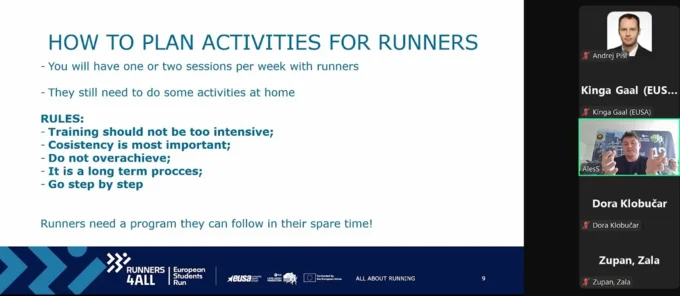 The Runners4All project, co-funded by the European Union and led by the Timing Ljubljana Association in collaboration with EUSA, successfully conducted a series of online workshops aimed at promoting physical activity, healthy living, and mentorship among university students.