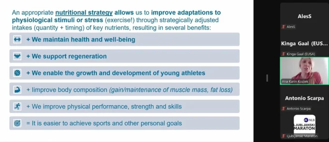 On the second day, May 14, 2025, the focus shifted to sports nutrition, with Ana Karin Kozjek explaining the principles of a balanced diet for athletes.