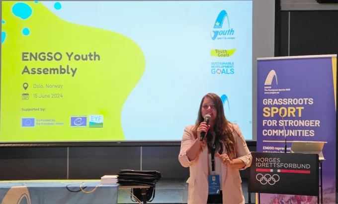 A session Leading with Purpose: Empowering Youth participation in Sport followed, focused on practical strategies meaningfully involving young people in sports leadership, with a strong focus on promoting equality and inclusion. Moderated by Ugne Chmeliauskaite from ENGSO Youth, the contributors were Luca Wernert from DSJ, Tarja Krum from ENGSO’s Equality Within Sport Committee (EWS) and Marco Rizzi from the Council of Europe’s Enlarged Partial Agreement on Sport (EPAS).