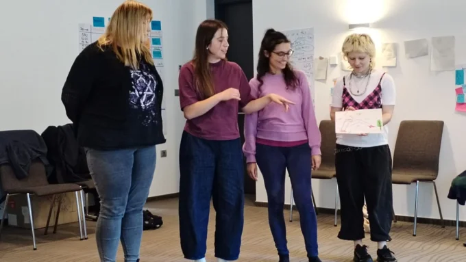 Time flew by between non-formal education activities, free time spent in the thermal pool of the hotel and good food. Our volunteers reflected on the competences they are developing or willing to develop during their volunteering, by writing a letter to their future self, among other activities, and engaged in a creative project management activity to learn better how to concretely give shape to their ideas. Self-organised evenings were also an important part of the week, gathering together volunteers from different groups in learning traditional dances, playing games, singing in a collective karaoke, or simply chatting with each other, exchanging ideas and perspectives.