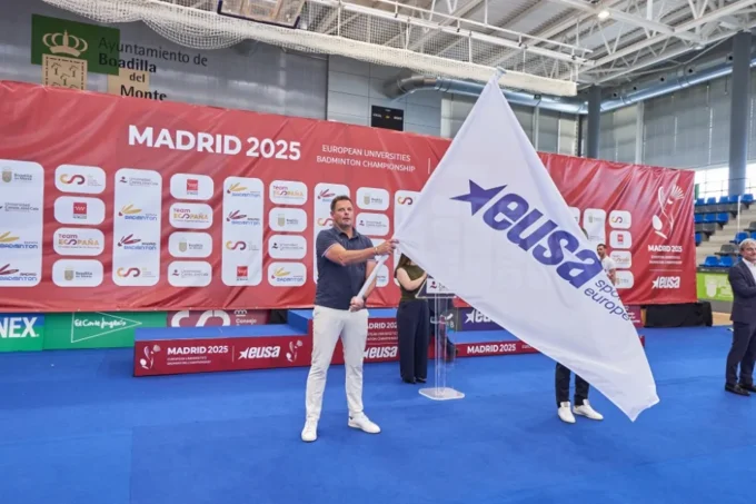 The next EUC Badminton will take place in Strasbourg, France, in 2027, a handover sealed by the handing over of the EUSA flag from the Spanish organisers to representatives of the French organising committee.