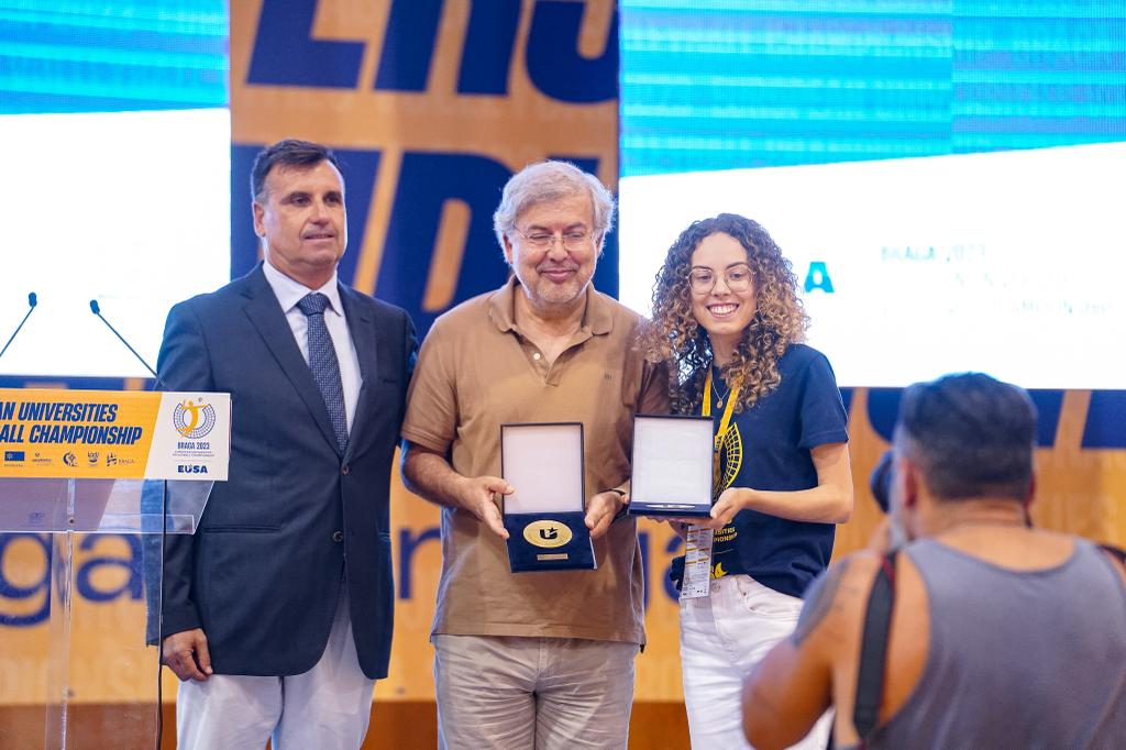 At the closing ceremony, the athlets and all attendees were greeted by Ms Margarida Isaias and Mr Felipe Santos, both thanking all of the people that made this championship possible, with great athmosphere and that build another set of great EUSA sport event memories. Mr Felipe Santos also presented gratitute awards to the Vice Rector of University of Minho Mr Eugenio Andrade and to Ms Margarida Isaias, President of the OC.