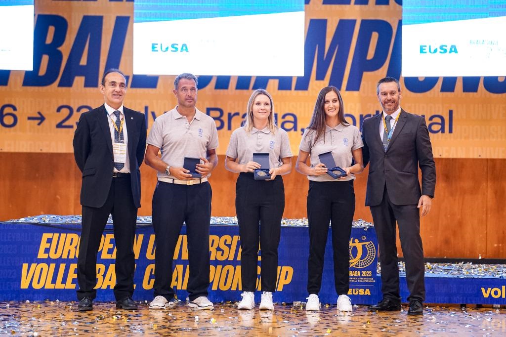 The medals and awards were presented by the President of the Organizing Committee, Ms Margarida Isaías, the EUSA Executive Committee Representative, Mr Filipe Santos, the Vice-Rectors of the University of Minho, Mr Eugénio Andrade and Mr Luís Amaral, Mr Pablo Martinez Martinez EUSA Technical Delegate for Volleyball and Mr Antionio Correa Benitez Assistant Technical Delegate.