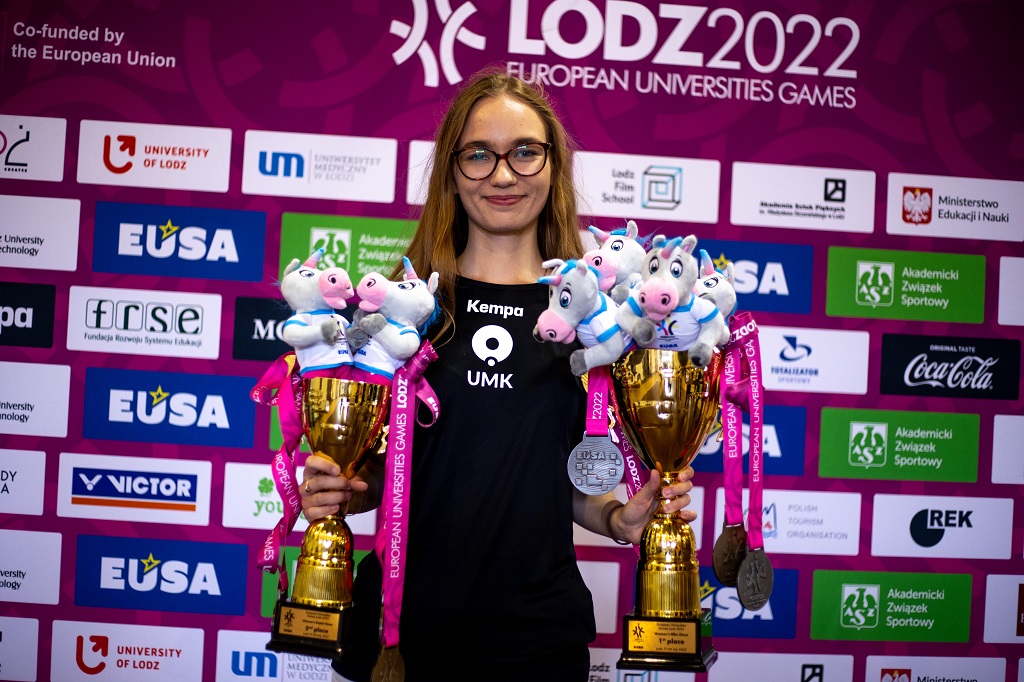 The first part of the day, the finals and awards ceremony unfolded for Chess competition. Four categories got awards for both men and women: blitz individual, blitz team, rapid individual, and rapid team tournaments. We can note the impressive performance of Ms Alicja Śliwicka representing Nicolaus Copernicus University in Torun, the first of the women tournament with a total of 2 gold medal, 1 gold cup and 1 silver cup.