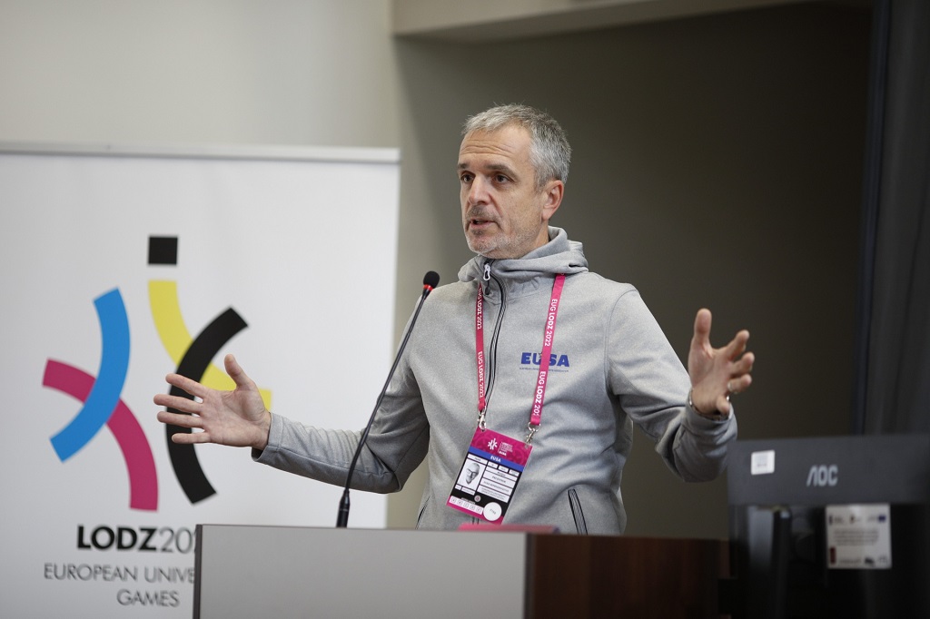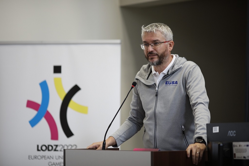 Next to greet the present NUSA representatives was Mr Adam Roczek, President of the European University Sports Association (EUSA), who addressed that besides all the challenges that the organization of these games had, he is happy to see everyone after a long time of not having EUSA events happening. He also stated that the start of the competitions is going smoothly, without any major concerns or challenges. He assured the attendees that the Organizational Committee and EUSA, both are going to make sure, that everyone will have a great stay and enjoyable time here at the European Universities Games 2022 in Lodz, Poland.