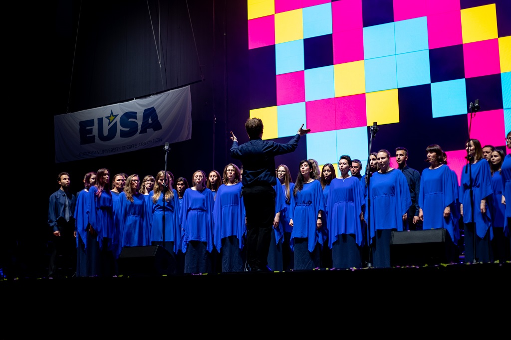 In the beginning of the Opening Ceremony, the march pass with the athletes and officials present took part. EUGenio, the games mascot opened the door and let in athletes from the participating countries. Around 2000 athletes and officials were part of the march, presenting proudly their universities on the European Universities Games 2022.