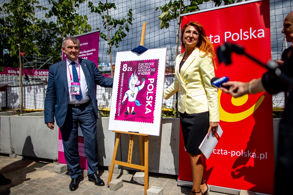 At today's conference, Ms Lucyna Prygiel-Augustyniak, the Regional Director of Polish Post in Lodz, had the honour to present the officially issued post stamp, made for the occasion of the Games, showing EUGenio, the official mascot of the European Universities Games. From today on, this post stamp will be available in post offices around the country, in circulation of 126.000 pieces.The stamps are also going to be available at the mobile points, located on the student campuses in Lodz.