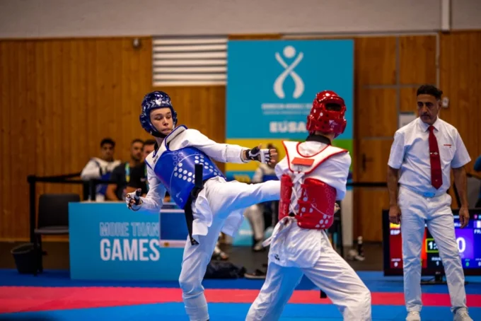 The last combat sport still in competition is taekwondo. This was the place to be today, where more points were scored and new placements up and down the scale were earned. In both men's and women's categories, athletes were showcasing their skills and determination to reach the finals and win medals. Besides the strong competitiveness present, there was also fair play and a great amount of support shown from athlete to athlete, as mentioned also by EUSA President Mr Adam Roczek who was present at the awarding ceremonies.