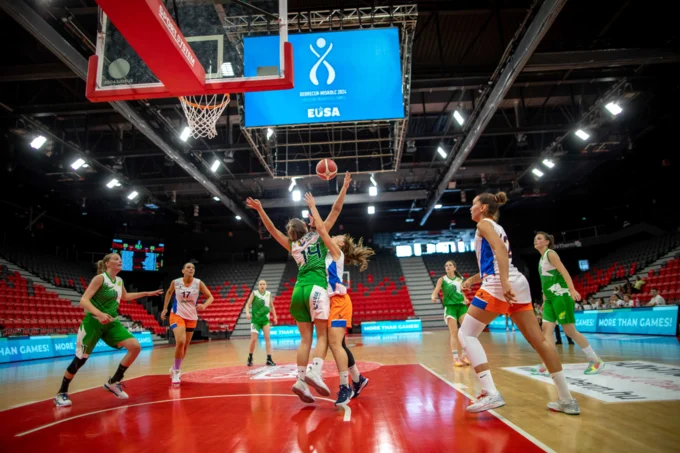 Generali Hall and DVTK are hosting the basketball tournament, which is steadily progressing through the rounds. All teams showcased great skills and strong team spirit, demonstrating solidarity to secure a place in the finals, which will take place on the last day of the Games. It has been very inspiring for everyone in the audience to witness these values through the sport and the performances happening every day. Today, we visited the match played by the University of Valencia and the University of Liege, where Valencia won 64 to 46, dominating throughout the game and finishing second in their group.