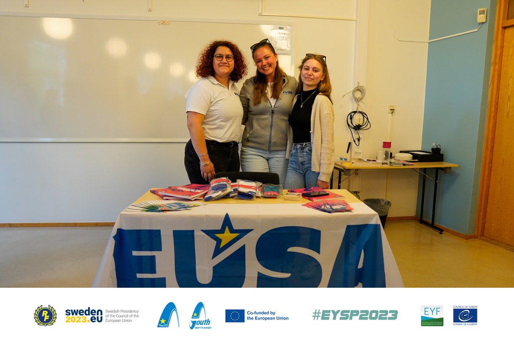 The day continued with an Exhibition fair from various Youth&Sport Organisations, where the European Universities Sports Association (EUSA) showcased the association and was represented at the stand by EUSA Communications Officer Ms Hristina Hristova, ESC Volunteer Ms Cristina Kenely, and EUSA Intern Ms Emma Carriere.