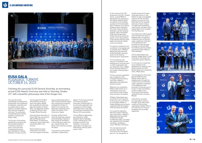 The European University Sports Association (EUSA) has published the annual edition of its magazine – the European University Sports Association Year Magazine 2023-24, recapping the European Universities Championships 2023 and reflecting on other events and projects.
