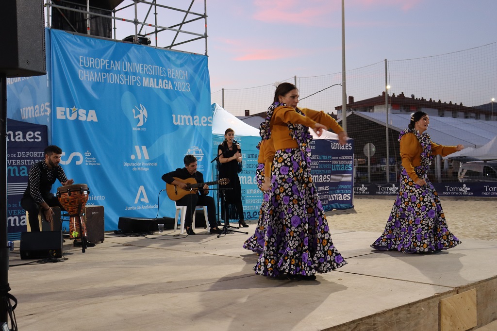 Once the European Universities Championship in Beach Handball was declared opened, all people attending the Opening Ceremony had the opportunity to enjoy a cultural performances by "Grupo Raíces".