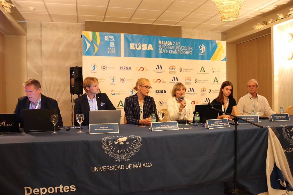 EUSA is represented by Mr. Miha Zvan, EUSA Sports Manager, Ms. Ivana Ertlova EUSA SCAC CHAIR for Beach Handball, the Technical Delegate, Ms. Jelena Eric, Mr. Marco Trespidi EUSA Assistant Technical Delegate, Ms Eszter Gulyas EUSA Sports Officer and Ms Hristina Hristova, EUSA Staff Representative.