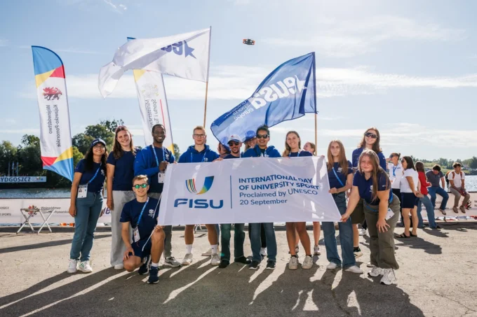 The European University Sports Association staff, joined by all participants and volunteers of the European Universities Rowing Championship 2025, celebrated together the International Day of University Sports (IDUS) in Bydgoszcz, Poland, also preparing for the upcoming celebration of the European Week of Sport (EWOS).