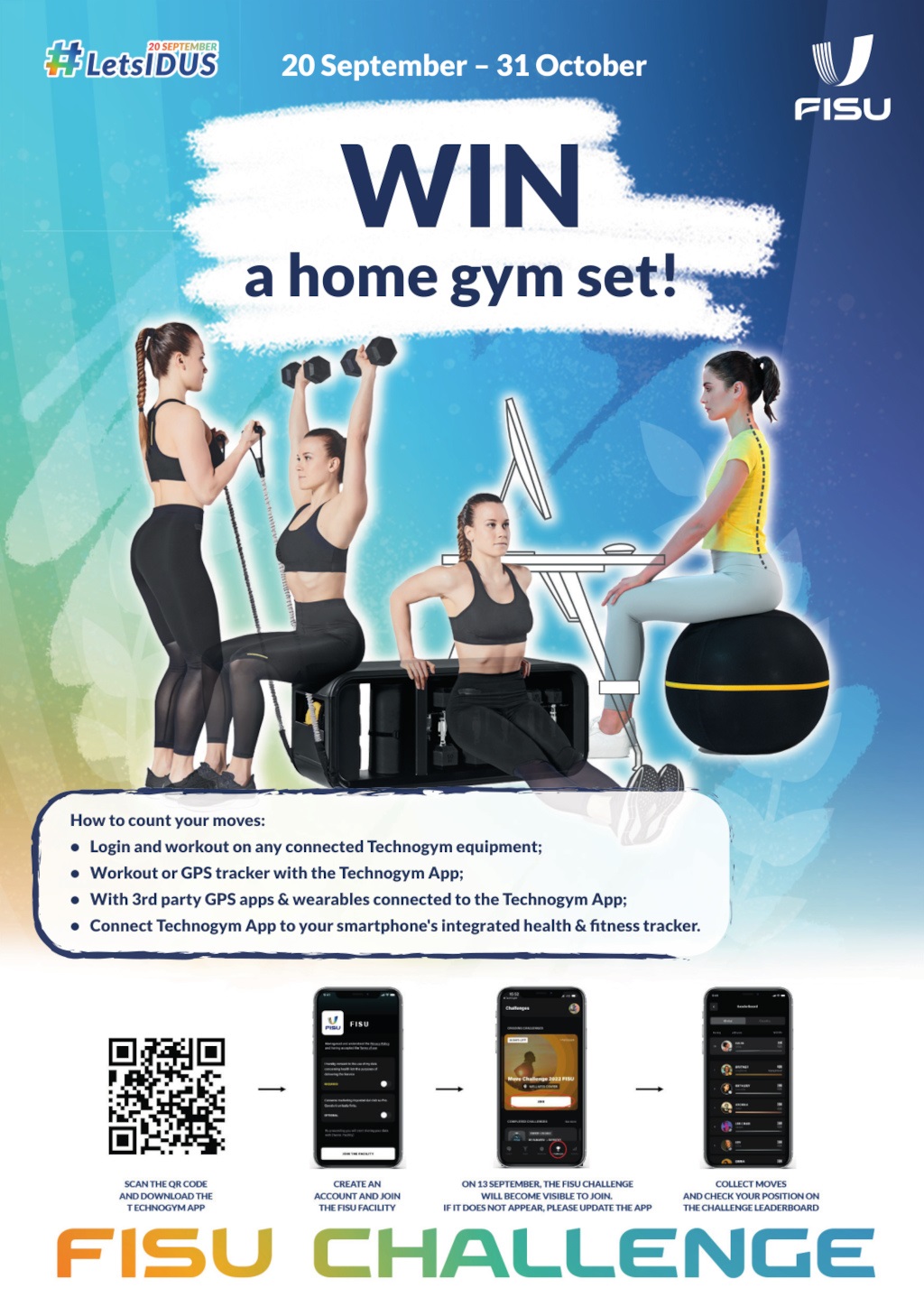 FISU in partnership with the Technogym App, is running the FISU Challenge 2022, which gives the chance to win a fully equipped Home Gym Bench set or a Wellness Ball Active Sitting exercise ball.