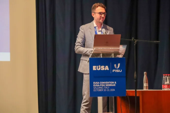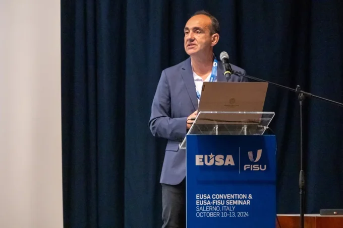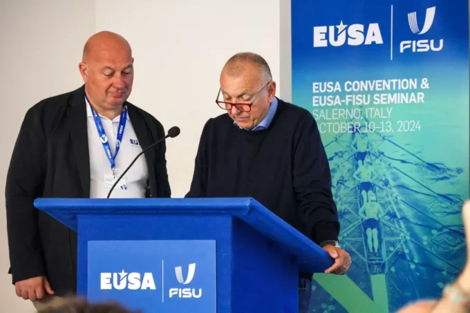 Mr Lorenzo Lentini, President of CUS Salerno, and Mr Francis M. M. Cirianni, EUSA Treasurer, presented the next edition of the European Universities Games taking place in Salerno in 2026.