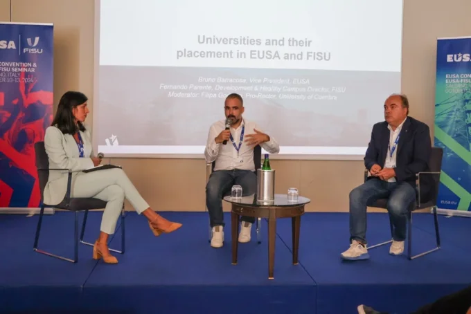 Moderated by Ms Filipa Godinho, Pro-Rector of the University of Coimbra, this panel saw Mr Bruno Barracosa, EUSA Vice President and Mr Fernando Parente, FISU Development & Healthy Campus Director taking part in the conversation.