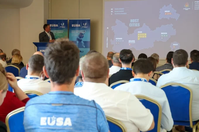 These two events, held simultaneously for the first time, gathered more than 100 people, including EUSA and FISU representatives, members of EUSA Technical Commission, future Organizing Committees of the upcoming European Universities Championships 2025, and other delegates.