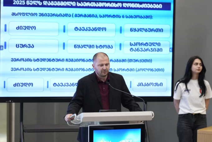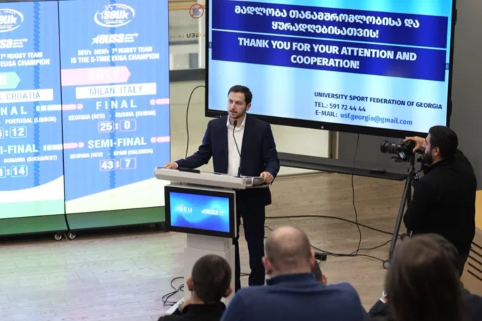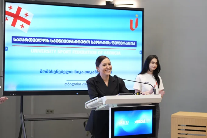 The welcome speech was delivered by USFG President Nino Gigineishvili, followed by the opening presentation of USFG Representative Nika Tikanashvili.
