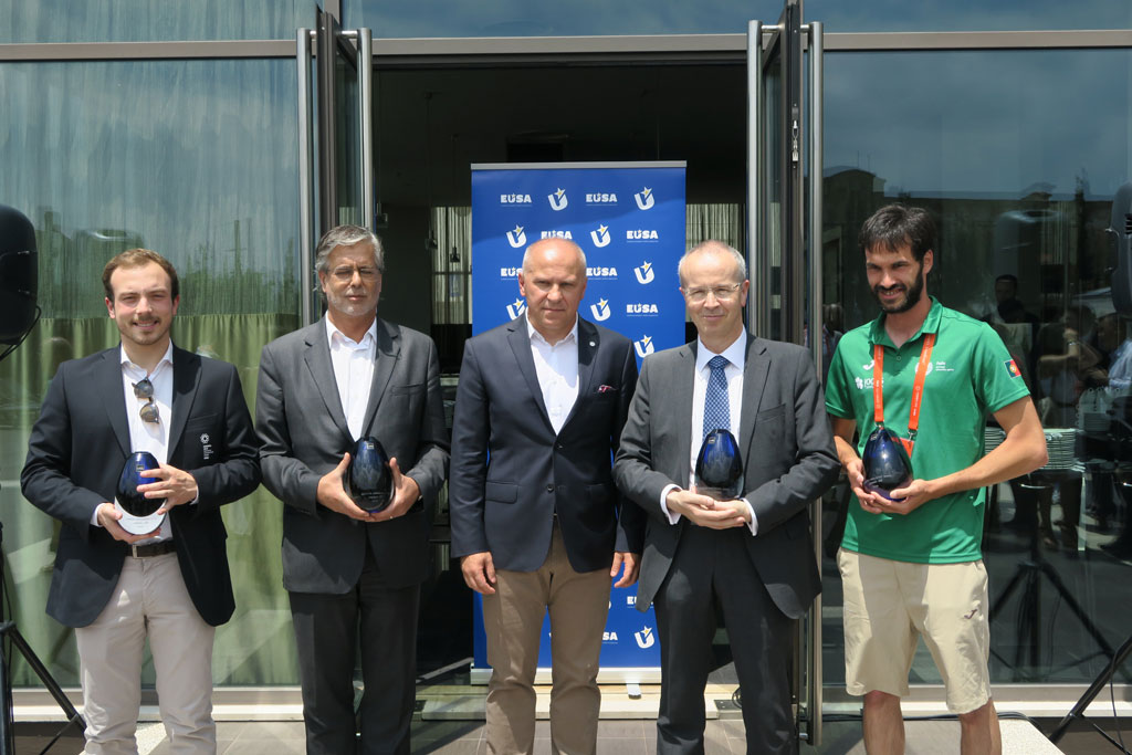 At the reception, EUSA President Mr Adam Roczek welcomed all the destingushed guests, shared his impressions about the EUG and thanked all the partners that helped organizing it. Representatives from the City of Coimbra, University of Coimbra, Academic Association of Coimbra (Academica) and Portuguese University Sports Association also received the gifts, that in the name of EUSA was given by the president, Mr Adam Roczek.