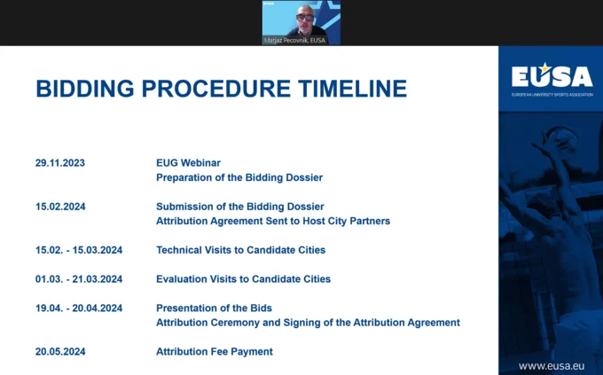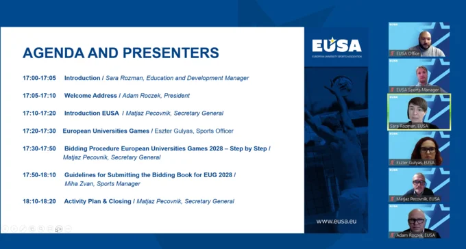 European University Sports Association (EUSA) hosted an insightful online Webinar for European Universities Games 2028 Candidate Cities on 29th of November, 2023.