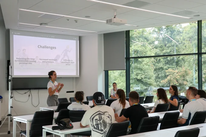 In Debrecen, the topic for today's workshop was dual carreer, facilitated by Franciska Coko and Ivana Brnas from Croatia and attended by volunteers at the Debrecen-Miskolc European Universities Games 2024.