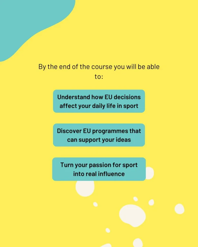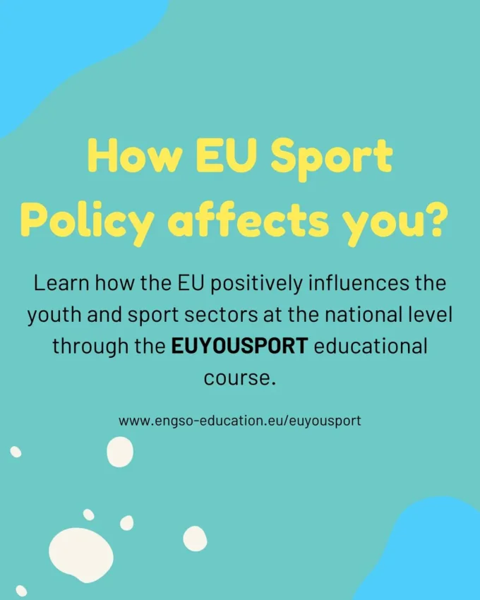 To support this objective, the EUYouSport project has developed a dedicated online educational course designed for: young people engaged in sport; volunteers and youth representatives; and staff and stakeholders within sport organisations.