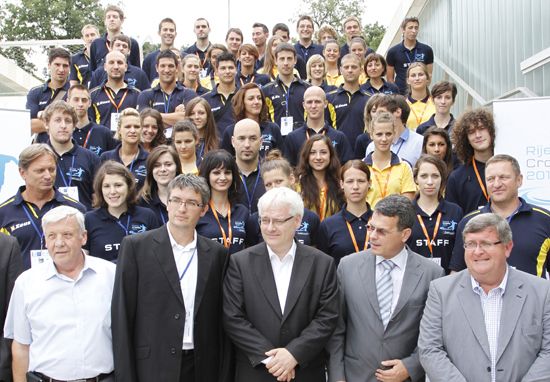 The event was also visited by the President of the Republic of Croatia Mr Ivo Josipović, meeting the representatives of the organising committee, along with the representatives of the Rijeka university Sports Association, University of Rijeka and the City of Rijeka. The President then also met with the volunteers at the championship. The President attended the women's match between the State University of Trade and Economics from Russia and the University of Zagreb from Croatia. The second half was announced by throwing the ball by Mr Josipović.