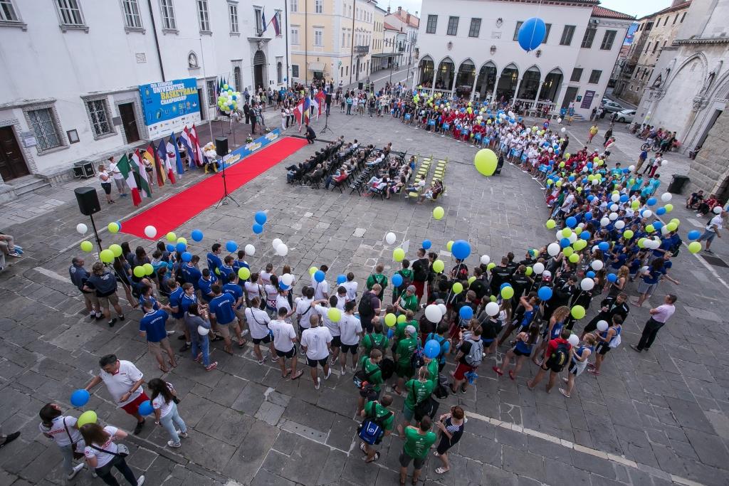 The Tito Square in Koper was flooded with young basketball players from all over Europe for the Opening ceremony of the 13th European Universities Basketball Championship on June 21, 2015.