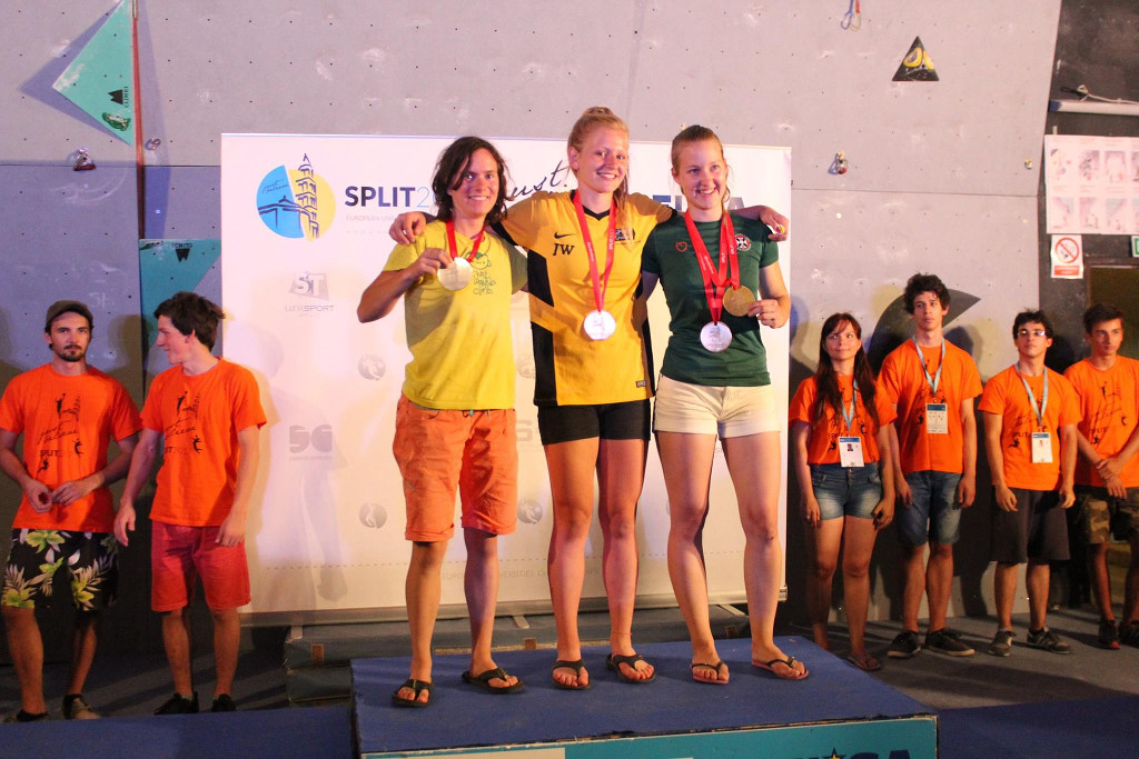 In the boulder category, the gold was won by Aleksandr Shikov from the Industrial University of Tyumen (RUS) and by Ajda Remskar from the University of Edinburgh (GBR), in the men’s and women’s competition respectively. In the speed category, the Russian athletes from the Industrial University of Tyumen (RUS) dominated the competitions, with Aleksandr Shikov and Yulija Kaplina winning the gold in the men’s and women’s competitions respectively. Lastly, in the lead category, the men’s competition was won by Simon Lorenzi, from the Catholic University of Louvain (BEL). Whilst In the women’s competition, the gold was conquered by Jennifer Wood from University of Sheffield (GBR).