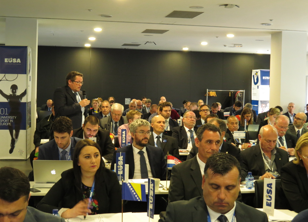 Addresses covering widespread topics followed, with EUSA President Mr Roczek delivering a report on the Executive Committee for the previous two years, EUSA Secretary General Mr Pecovnik focusing on EUSA sports events and projects supported by the European Commission through the Erasmus+ programme as well as FISU, while EUSA Vice-President Mr Haris Pavletic shared experiences of hosting the 2016 European Universities Games in Zagreb-Rijeka.
