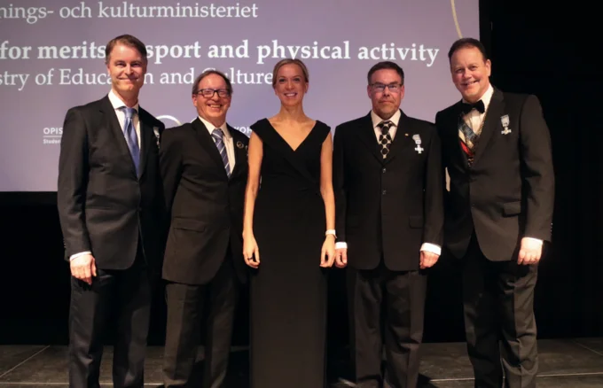 Awards and high merits were given to sports clubs and to individuals, for the excellent work in promoting OLLs goals. An Honorary Award was awarded to a person who has promoted OLLs goals in a significant way over a long period, to the Senior Special Advisor for University Sport Jussi Ansala, who received the award to a standing ovation.