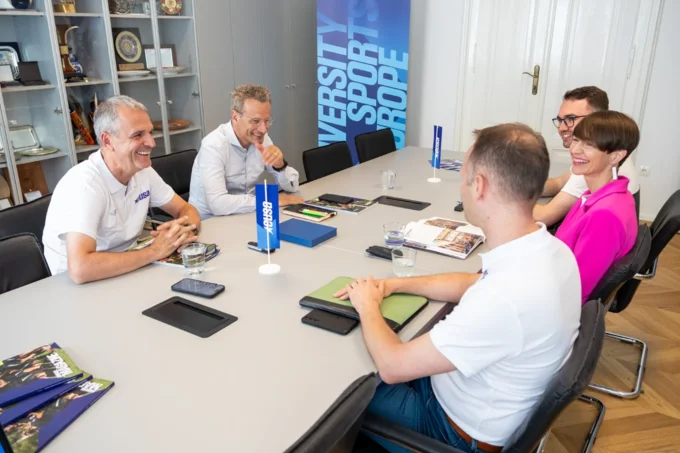 The meetings focused on evaluating the outcomes of recent joint initiatives and strategising for upcoming events, including the European Universities Games scheduled for 2026 in Salerno, Italy; exploring opportunities to expand educational programs and volunteer engagement within university sports.