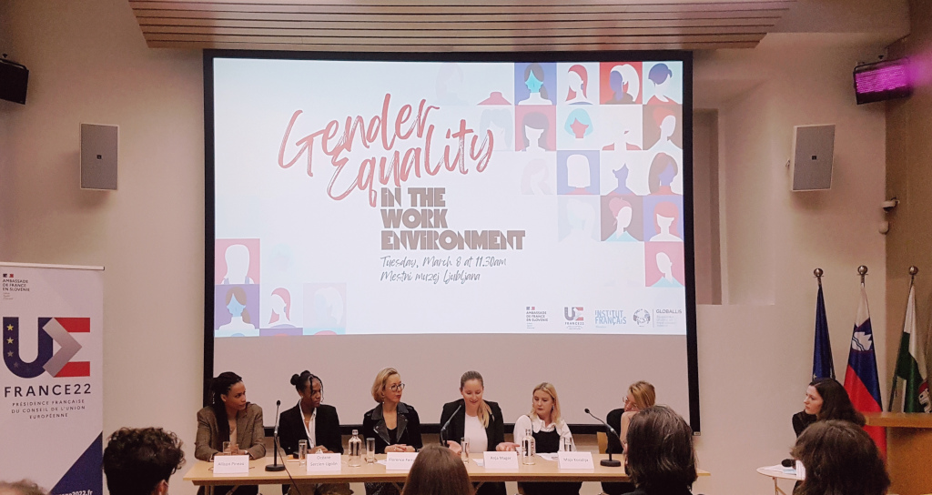 On the same day, the French Ambassy in Slovenia, together with the French Institute of Ljubljana and Globallis - Student Association for International Relations, under the auspices of the French Presidency of the Council of the European Union, hosted the event Gender Equality in the Work Environment. Different professional fields (politics, agriculture, sport) were presented and discussed.