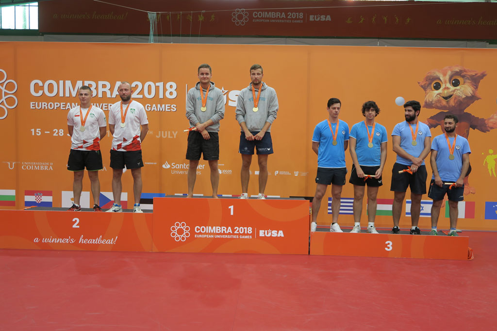 In mens doubles competition Technical University of Ostrava (Czech Republic) won the gold, Rzeszow University of Technology (Poland) silver, and two teams from Marmara University (Turkey) won the bronze medals.