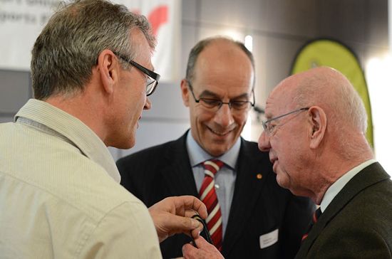 The Head of Delegation, Erich Hanselmann, presented a colorful and interesting report. After beeing HoD in Harbin and Erzurum, he retired from his position and received also an honour from the SUSF like the Chairman and Vice President of the OC of the WUC Chess, Bernhard Burkhardt and Walter König. Finally the delegates accepted to participate at both Universiades 2013 in Maribor, Slovenia and Kazan, Russia.