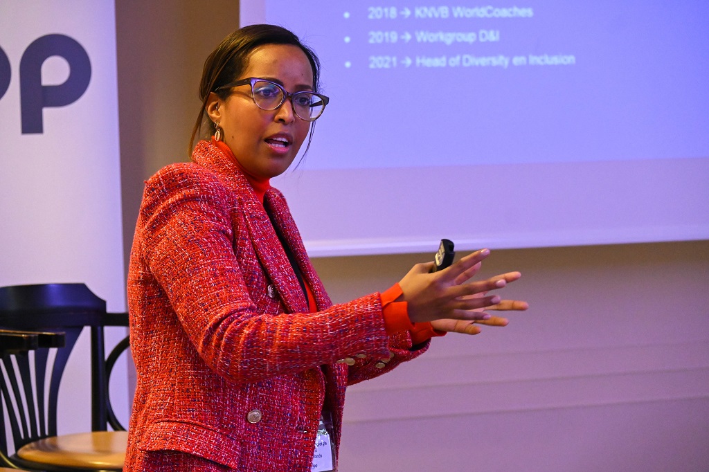 Another pesonal journey of woman leadership was shared by Ms Fnaan Woldegiorgis, Head of Diversity and Inclusion at The Royal Dutch Football Association (KNVB).