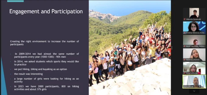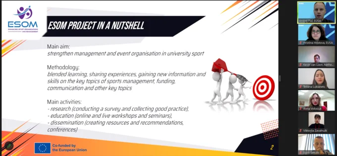 To open the satellite seminar, Andrej Pisl, Project and Communications Manager of the European University Sports Association (EUSA) gave an overview of the ESOM project, the aims, main activities, topics addressed, as well as the timeline for 2023 and 2024.
