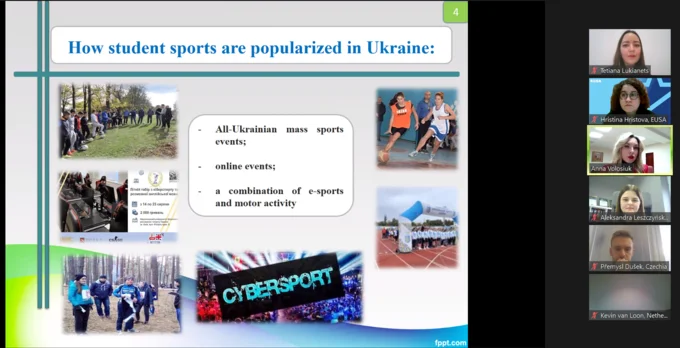 To conclude this seminar was Anna Volosiuk, representative of the Sports Student Union of Ukraine, presenting about Marketing and promotion in university sport and best practices from their experience. She spoke about how student sport got popularised in Ukraine, the information tools, the mass sport events in Ukraine, as well as other ways of increasing interest for university sport on a local and international level.