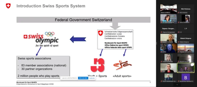 The programme of the conference then continued with the first plenary session, including four speakers and four different topics. Oleksii Dniprov was presenting on the topic of Sports and Education: Modern Challenges; Jana Vooboril presented the Distinctive features of the Swiss system for elite athlete preparation; and Viorel Mocanu explained how adapted physical activities are used as a tool for social inclusion.