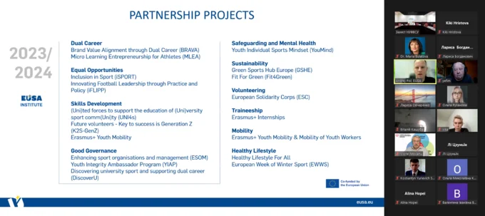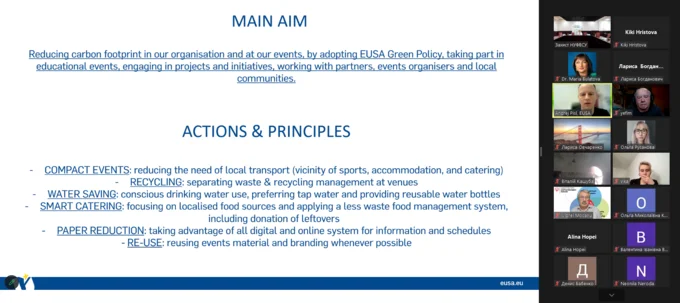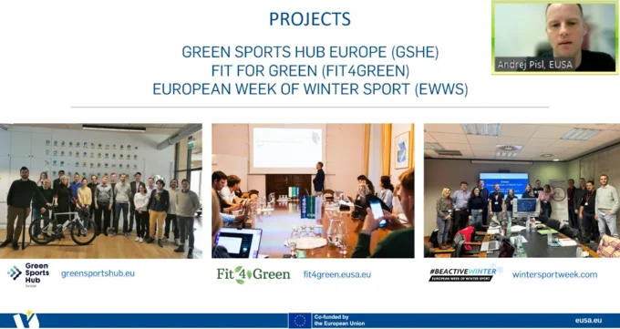 Projects related to sustainability, dual careers, good government, equal opportunities, and joint projects and initiatives were also presented. Special focus was on those projects, co-funded by the European Union on environmental sustainability which EUSA Institute either leads (e.g. Fit For Green - Fit4Green) or partners with (e.g. Green Sports Hub Europe - GSHE and European Week of Winter Sport - EWWS).